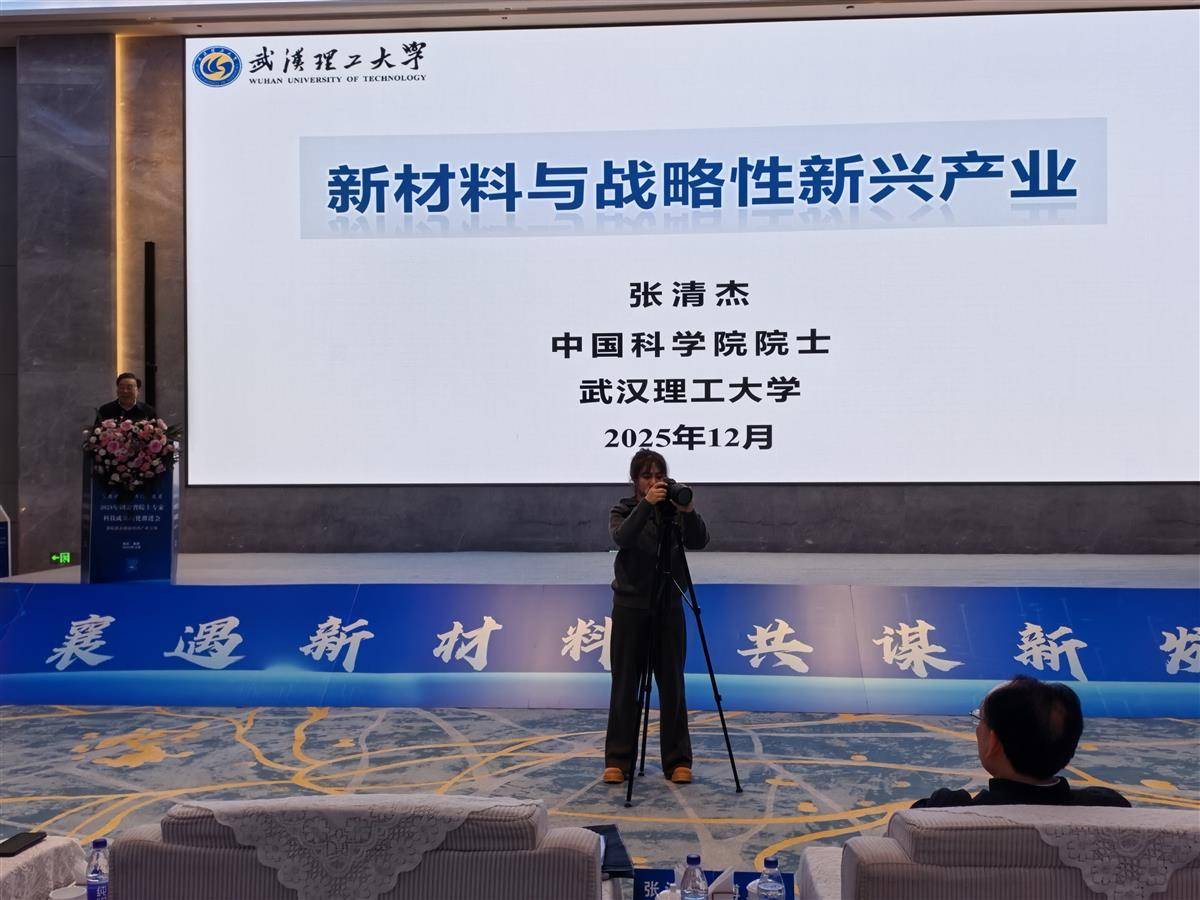 中国科学院院士、武汉理工大学张清杰教授作主题报告《新材料与战略性新兴产业》。(湖北日报全媒记者包东喜摄)