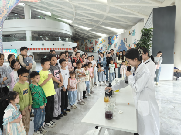 科普剧场内,“气体有魔法”“水火不容”“化学幻彩秀”多个科普实验秀轮番上演。将科学知识融入剧情与实验,通过剧情将抽象知识转化为角色冲突和任务挑战,通过角色扮演、观众互动和趣味实验,让科学知识“活”起来。每一场秀都是一次科学魔法的狂欢!